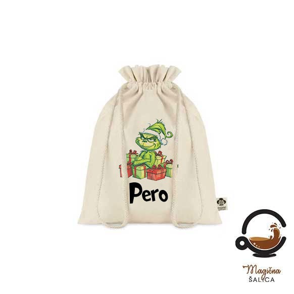 Tražite zabavan i personaliziran način za pakiranje poklona ove blagdanske sezone? Naša božićna personalizirana vrećica Grinch stvorena je upravo za to! S motivom neodoljivog Grincha i mogućnošću dodavanja imena ili posebne poruke, ova vrećica donosi dodatnu čaroliju u vaše darivanje.