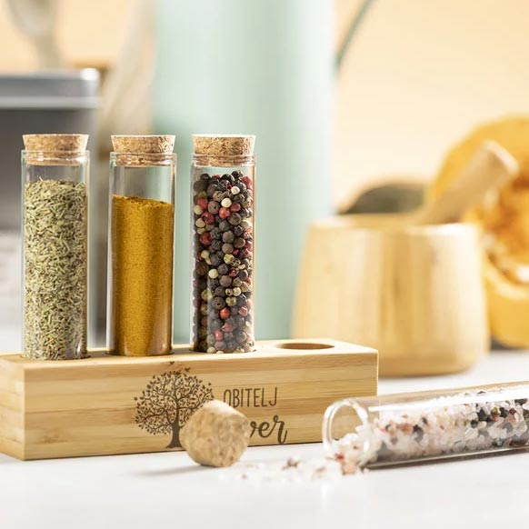 Osim što čini kuhinju organiziranijom i ljepšom, ovaj set potiče korisnika da koristi kvalitetne začine i čuva ih na praktičan i estetski način. Personalizirani pokloni koji su i funkcionalni i lijepi uvijek ostavljaju snažan dojam – baš kao i ovaj!