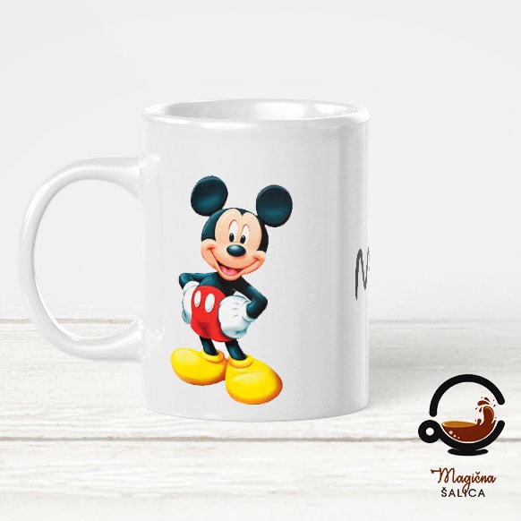 Mickey Mouse šalica s imenom zapremnine 3 dcl, s velikom ručkom sa strane, postat će tvoja najdraža šalica za ispijanje čaja, kave, soka i svih ostalih tebi dragih tekućina.