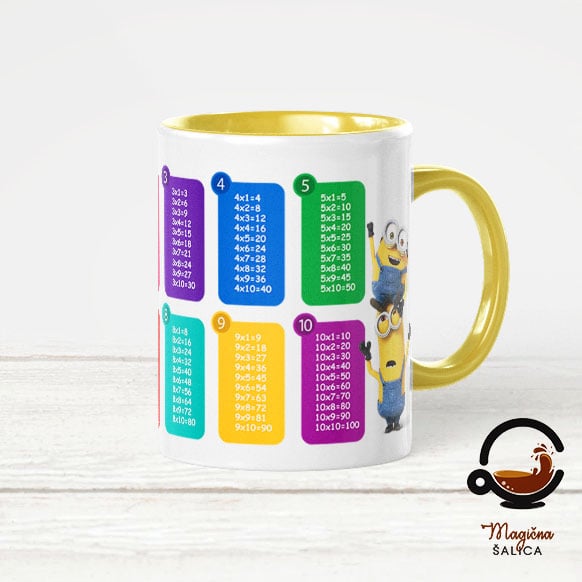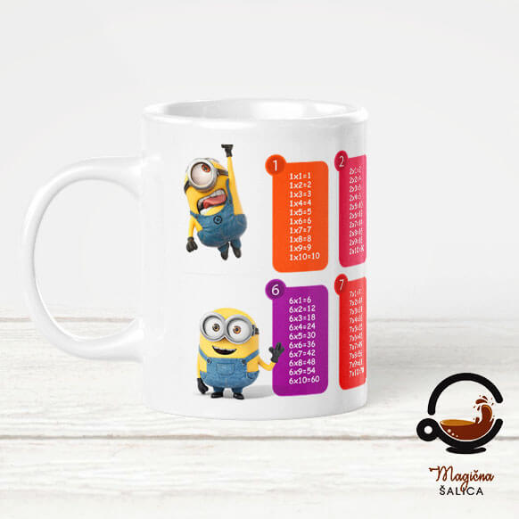 Šalica Minion tablica množenja na šalici zapremnine 3 dcl, s velikom ručkom sa strane, postat će najdraža šalica za ispijanje čaja, soka i svih ostalih tekućina koje tvoje dijete voli.