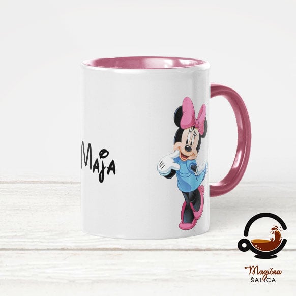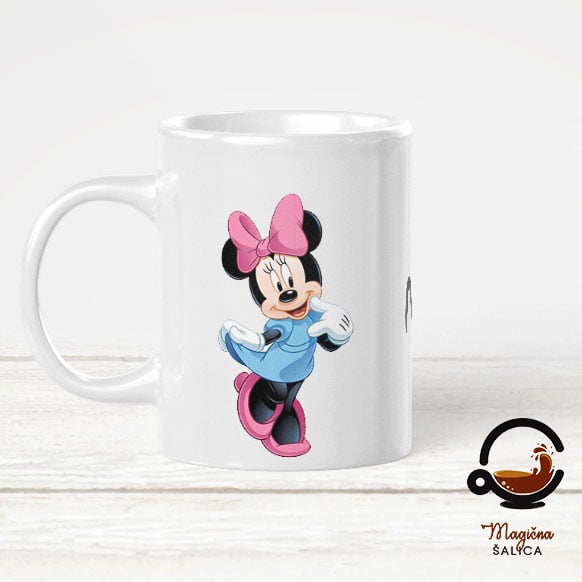 Šalica na sebi ima aplikaciju Minnie Mouse i moguće ju je personalizirati osobnim imenom.