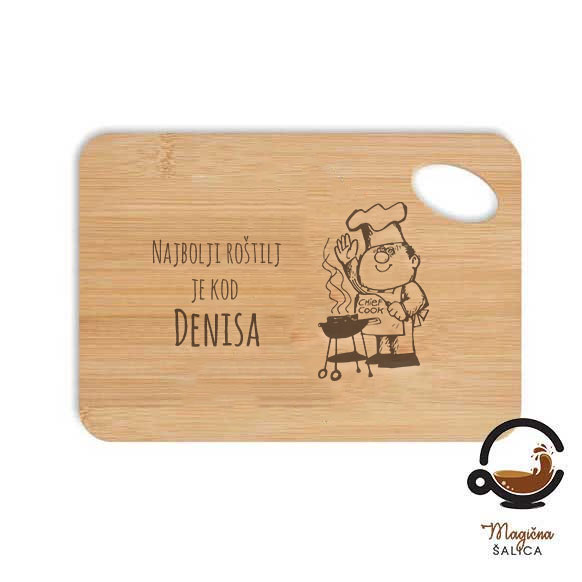 Personalizirana daska za rezanje s gravurom “Najbolji roštilj je kod [ime]” idealan je poklon za sve ljubitelje roštiljanja i kuhanja na otvorenom. Izrađena od visokokvalitetnog drva, daska je savršena za pripremu i serviranje mesnih delicija, dok njezina elegantna izrada dodaje sofisticiranost svakom roštilju.