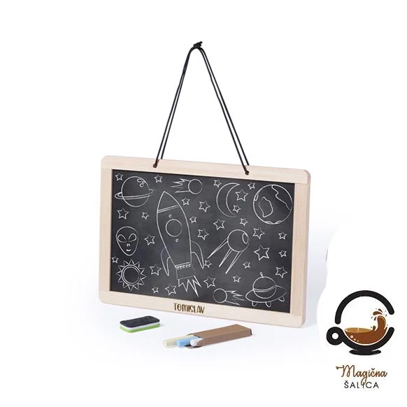 U kompletu dolaze i tri komada krede, jedan marker te brisač koji se može koristiti na obje površine. To znači da je sve spremno za korištenje odmah nakon što ploča stigne. A najbolji dio? Možeš je personalizirati imenom, motivom ili natpisom po želji, što je čini još posebnijim poklonom koji će sigurno izmamiti osmijeh na lice.