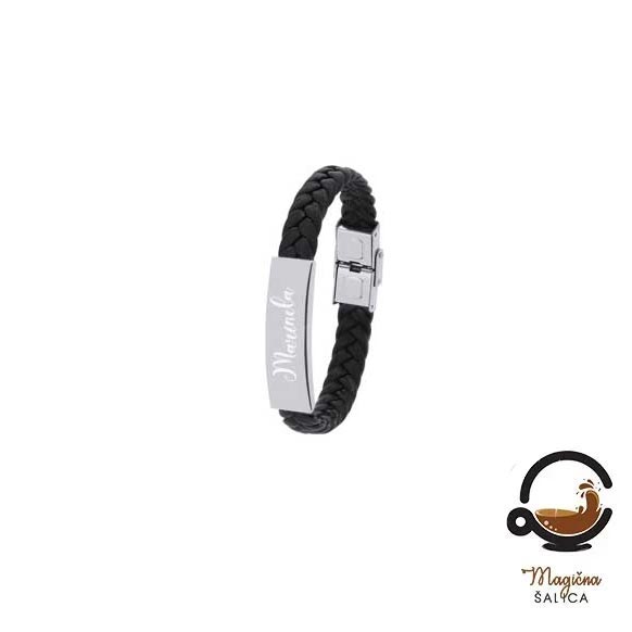 Personalizirana narukvica Mubark je unikatan i poseban poklon koji će oduševiti svakoga tko je primi. Izrađena od kvalitetne sintetičke kože, ova crna narukvica s pločicom od nehrđajućeg čelika ističe se svojim bezvremenskim dizajnom i minimalističkom estetikom.