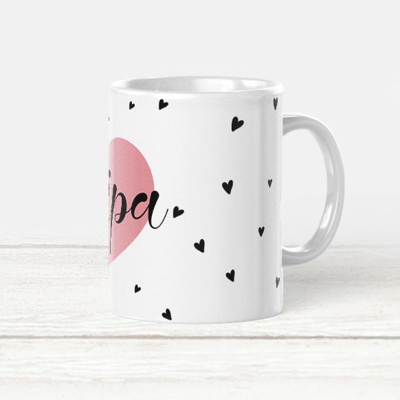 Šalica na sebi ima aplikaciju srca i moguće ju je personalizirati osobnim imenom.