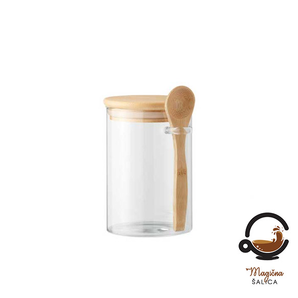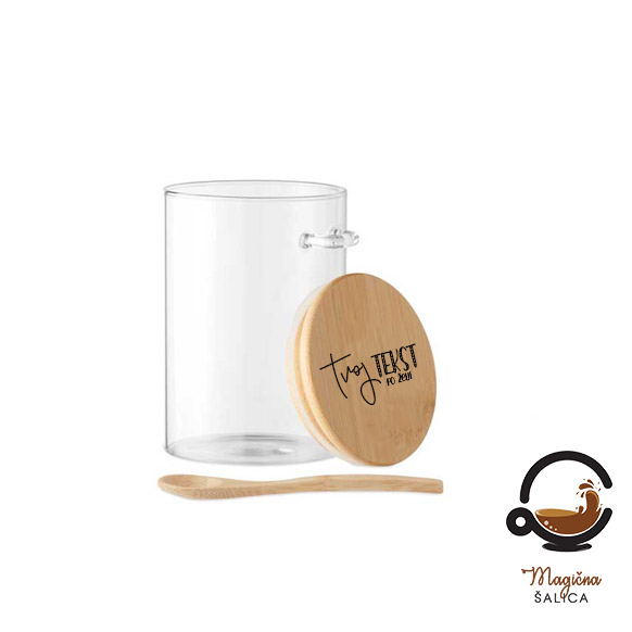 Personalizirana posuda za pohranu namirnica predstavlja spoj elegancije, praktičnosti i održivosti. Izrađena je od visokokvalitetnog borosilikatnog stakla, materijala koji je otporan na termalne promjene i udarce, čineći je dugotrajnom i pouzdanom.