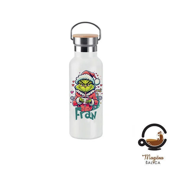 Personalizirana termosica Grinch donosi duh Božića u vaš svakodnevni život! S motivom simpatičnog Grincha i mogućnošću personalizacije s vašim imenom ili posebnom porukom, ova termosica čini svaku šalicu kave ili čaja još posebnijom.