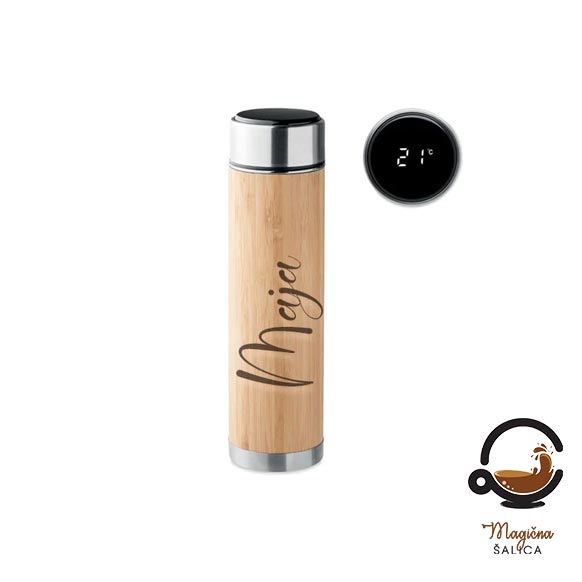 Personalizirana termosica od nehrđajućeg čelika i bambusa s vakuumskom izolacijom idealna je za održavanje tvojeg napitaka toplima ili hladnima tijekom cijelog dana.