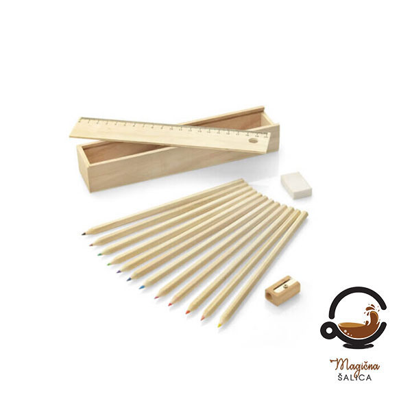 Sve ove stvari dolaze u prekrasnoj drvenoj kutiji s poklopcem koji na sebi ima gravirano ime. Drveni set bojica u kutiji će omogućiti da sve držite na jednom mjestu te lako prenosite gdje god želite.