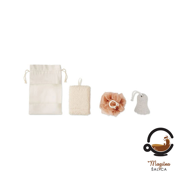 Personalizirani set za kupanje sa spužvicom, kamenom i krpicom u jutenoj vrećici