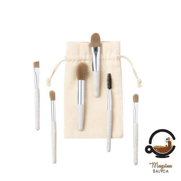 Ovaj elegantni set od 6 kistova za šminku spaja funkcionalnost, stil i brigu o okolišu – sve što čini savršen poklon za osobu koja voli šminku i cijeni održive proizvode. Kistovi su izrađeni od kombinacije PP plastike i slame pšenice, što im daje jedinstven, prirodan izgled, a dolaze u praktičnoj pamučnoj torbici na vezanje.