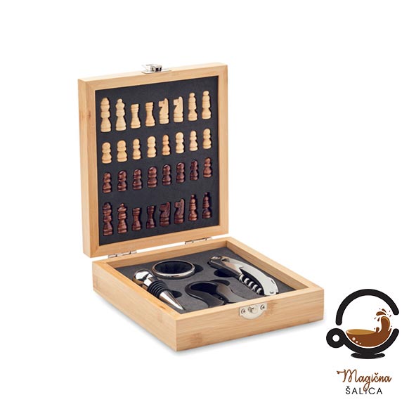 Uživajte u opuštanju uz čašu omiljenog vina dok se zabavljate uz partiju šaha s prijateljima ili obitelji. Unikatni set ne samo da će biti savršen dodatak vašem domu, već i jedinstveni poklon koji će oduševiti svakog ljubitelja dobrog vina i igre.