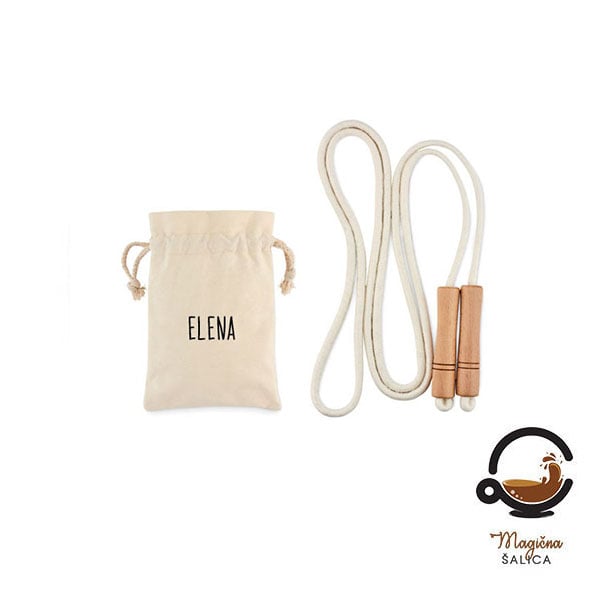 Pamučno uže za preskakanje s drvenim ručkama ili popularno vijače. Isporučuje se u pamučnoj personaliziranoj vrećici s imenom.
