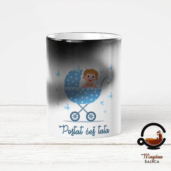 Magična šalica Postat ćeš tata zapremnine 3 dcl, s velikom ručkom sa strane, postat će tvoja najdraža šalica za ispijanje čaja, kave, soka i svih ostalih tebi dragih tekućina.