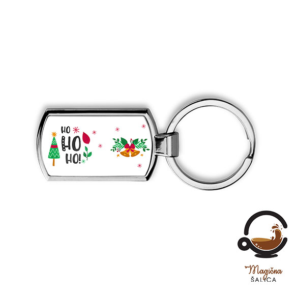 Metalni privjesak na ima sebi aplikaciju s Božićnim natpisom Ho Ho Ho.