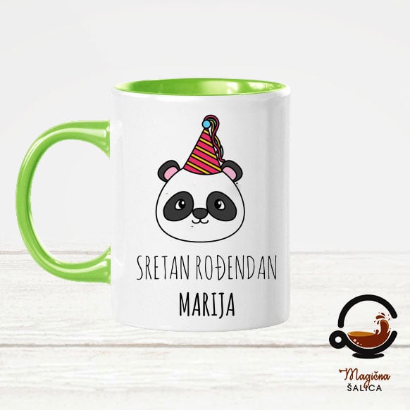 Panda šalica s natpisom Sretan rođendan i imenom, ova šalica će biti svakodnevni podsjetnik.
