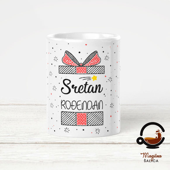 Šalica na sebi ima aplikaciju rođendanskih poklona i čestitke