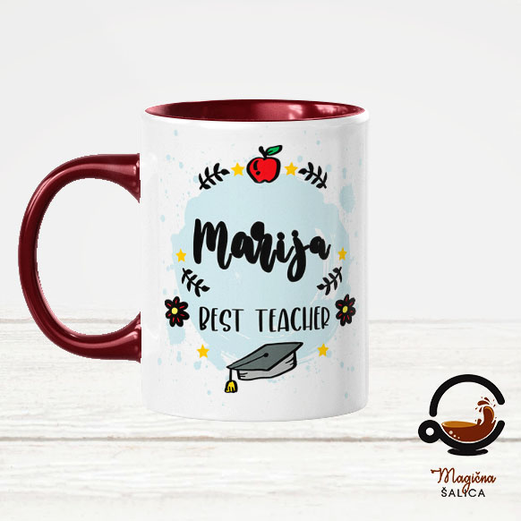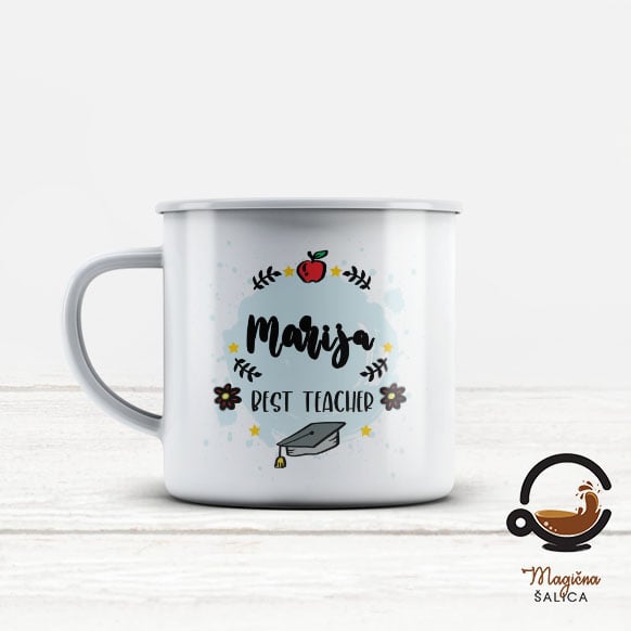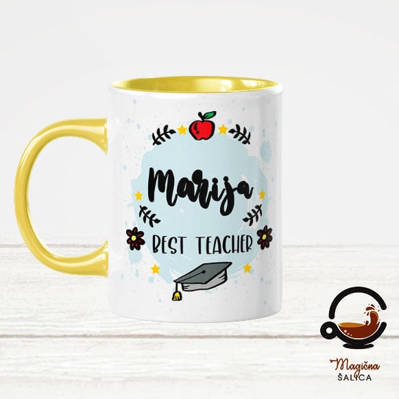 Šalica na sebi ima aplikaciju u boji šalice i moguće ju je personalizirati osobnim imenom.