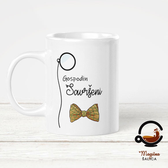 Šalica na sebi ima aplicirani natpis: „Gospodin savršeni“.