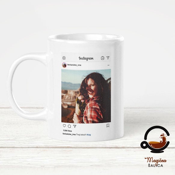 Šalica Instagram zapremnine 3 dcl, s velikom ručkom sa strane, postat će tvoja najdraža šalica za ispijanje čaja, kave, soka i svih ostalih tebi dragih tekućina.