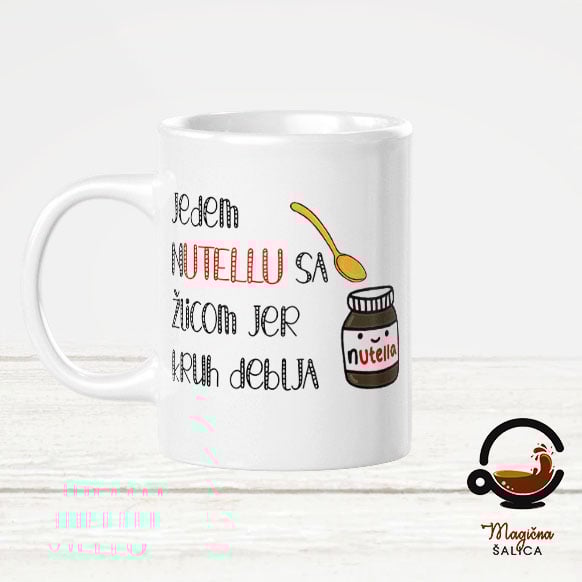 Šalica jedem Nutellu 3 dcl, s velikom ručkom sa strane, postat će tvoja najdraža šalica za ispijanje čaja, kave, soka i svih ostalih tebi dragih tekućina.