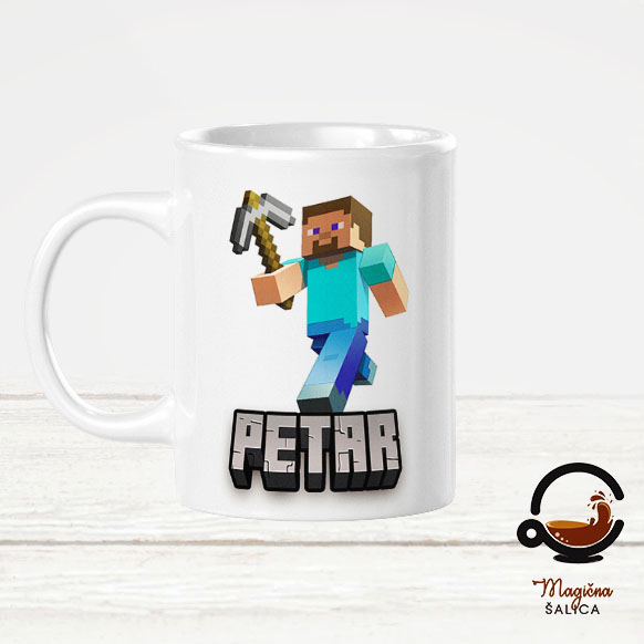 Šalica Minecraft s imenom zapremnine 3 dcl, s velikom ručkom sa strane, postat će tvoja najdraža šalica za ispijanje čaja, kave, soka i svih ostalih tebi dragih tekućina.