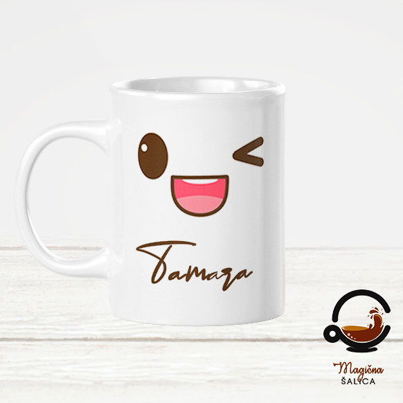 Šalica na sebi ima aplikaciju simpatične slike i moguće ju je personalizirati osobnim imenom.