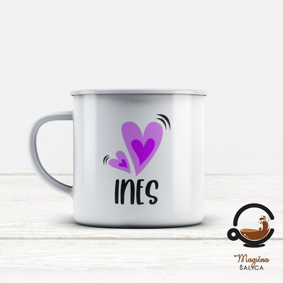 Šalica na sebi ima aplikaciju u boji šalice i moguće ju je personalizirati osobnim imenom.