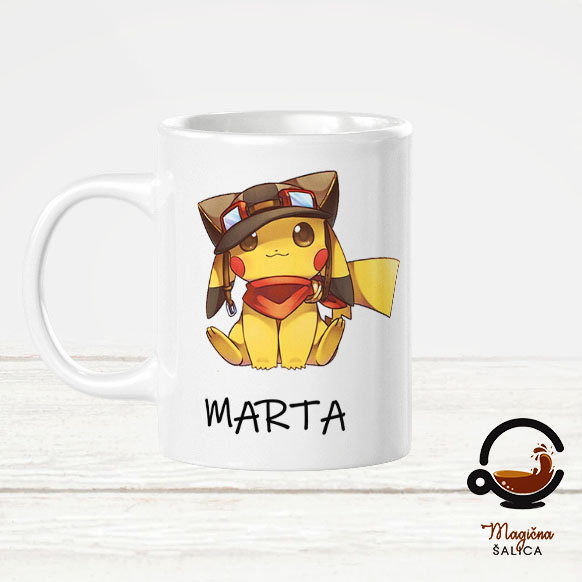 Šalica ima aplikaciju slike pokemona i moguće ju je personalizirati osobnim imenom.