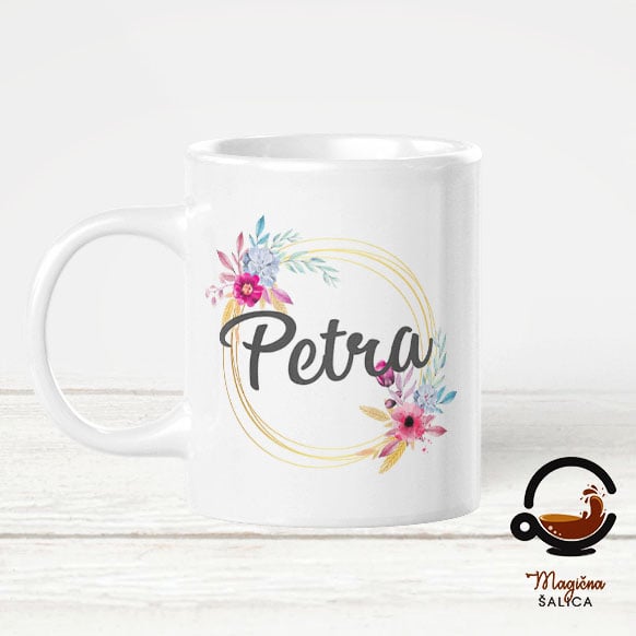 Šalica na sebi ima aplikaciju cvijeća i moguće ju je personalizirati osobnim imenom.