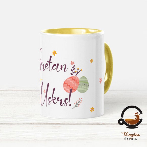 Šalica Sretan Uskrs zapremnine 3 dcl, s velikom ručkom sa strane, postat će tvoja najdraža šalica za ispijanje čaja, kave, soka i svih ostalih tebi dragih tekućina.