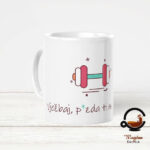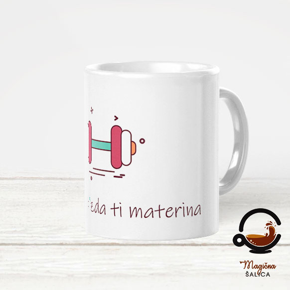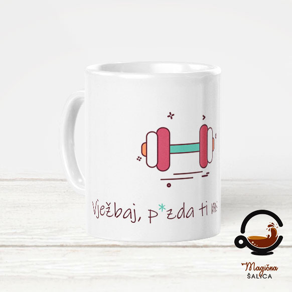 Šalica Vježbaj p*zda ti materina zapremnine 3 dcl, s velikom ručkom sa strane, postat će tvoja najdraža šalica za ispijanje čaja, kave, soka i svih ostalih tebi dragih tekućina.