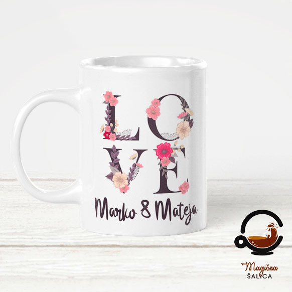 Ljubavna šalica je moguće personalizirati tvojim imenima.